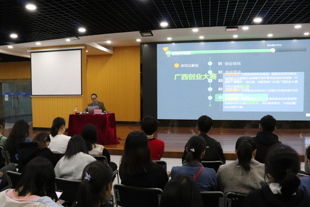 为了加强我校学生对创新、创业、就业政策的理解,11月27日下午,创新创业教育学院在创新创业中心路演大厅举办了创新创业政策知识讲座活动。活动特邀梧州市人社局就业促进科科长覃振东作为主讲嘉宾出席。