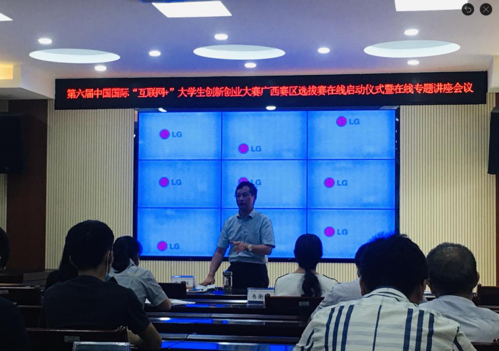 按照自治区教育厅要求,学校于6月10日上午在明理楼七楼视频会议室组织召开第六届中国国际“互联网+”大学生创新创业大赛广西赛区选拔赛在线启动仪式暨在线专题讲座梧州学院分会场会议,梧州学院2020“互联网+”大学生创新创业大赛组委会主任麻新纯副校长、组委会成员、组委会办公室成员以及创新创业中心办公室学生助理、孵化区企业代表参加了会议。
