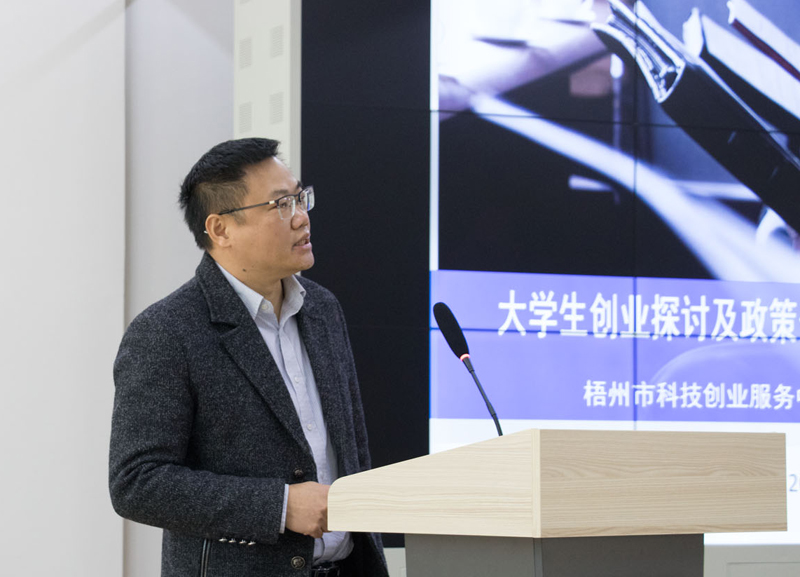 12月31日下午,我校在科技楼508多媒体教室举办“梧院双创邀您说”讲坛之大学生创业政策解读讲座。由梧州市科技创业服务中心、梧州市轻工业研究所苏炜所长主讲,我校师生一百余人到场聆听了讲座。