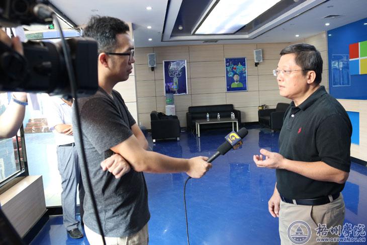 杨奔校长在接受采访时,从学校支持大学生创新创业的策划措施、未来创新人才的培养的规划等方面进行了介绍。他表示,今年学校成立了创新创业教育学院,并拟定了众创空间建设规划方案,对我校未来五年的创新创业工作做了计划部署。在基地建设方面,将在大学生综合发展中心建设成果的基础上建设“梧州学院众创空间”,使其成为集“工程实践教育、创新创业知识教育、创业就业思想集聚、学生创业就业实践、商业项目对接、政校企合作、创新创业孵化、创业成果展示”于一体的多功能大学生创新创业平台。