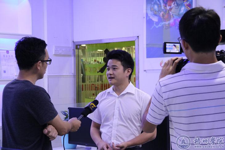 9月20日上午,广西电视台信息中心时政部主管马炳新记者一行来到我校,就我校大学生创新创业的良好经验、做法以及规划进行专访。校长杨奔及创业大学生代表徐涛等接受了采访。