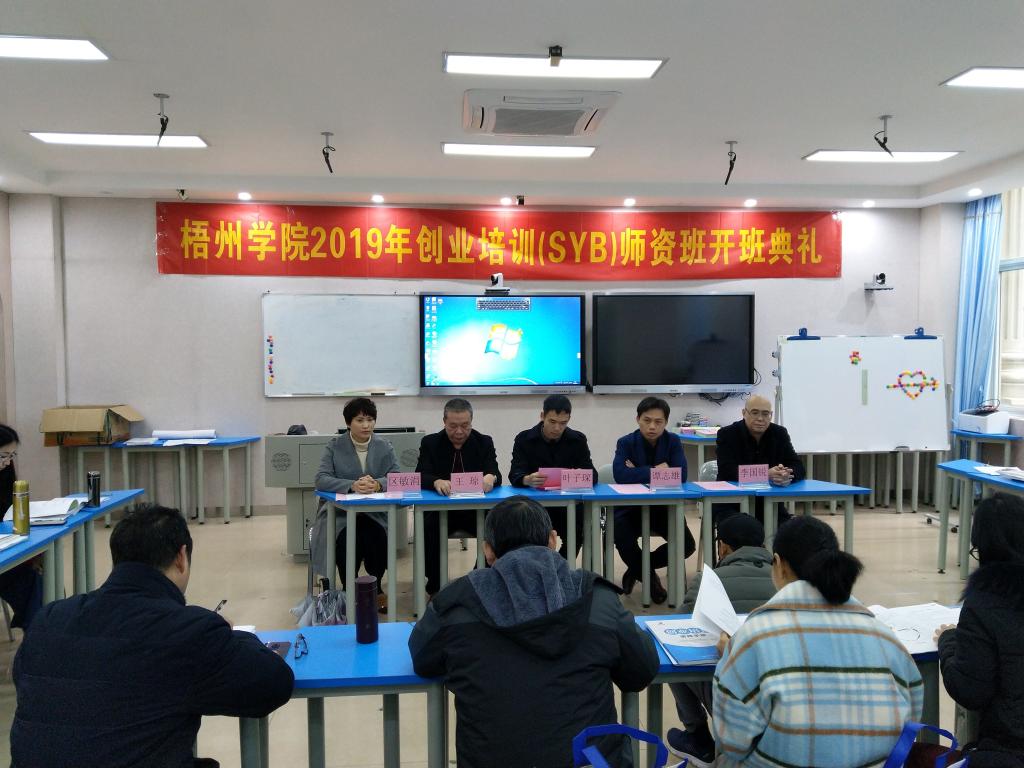 为了加强我校创新创业师资队伍建设,进一步深化学校创新创业教育改革,营造创新创业文化氛围,增强创新创业教育指导老师的凝聚力,提高指导老师对参加创新创业活动学生的指导能力和水平,满足学校培育创新创业教育指导老师队伍的迫切需要,2019年1月9日上午,学校创新创业教育学院联合广西人才服务办公室在学校明理楼M210教室举办了2019年第一期全区创业培训(SYB)师资班,并举行了开班典礼,创新创业教育学院、自治区人才服务办公室的相关领导出席开班典礼并发言。